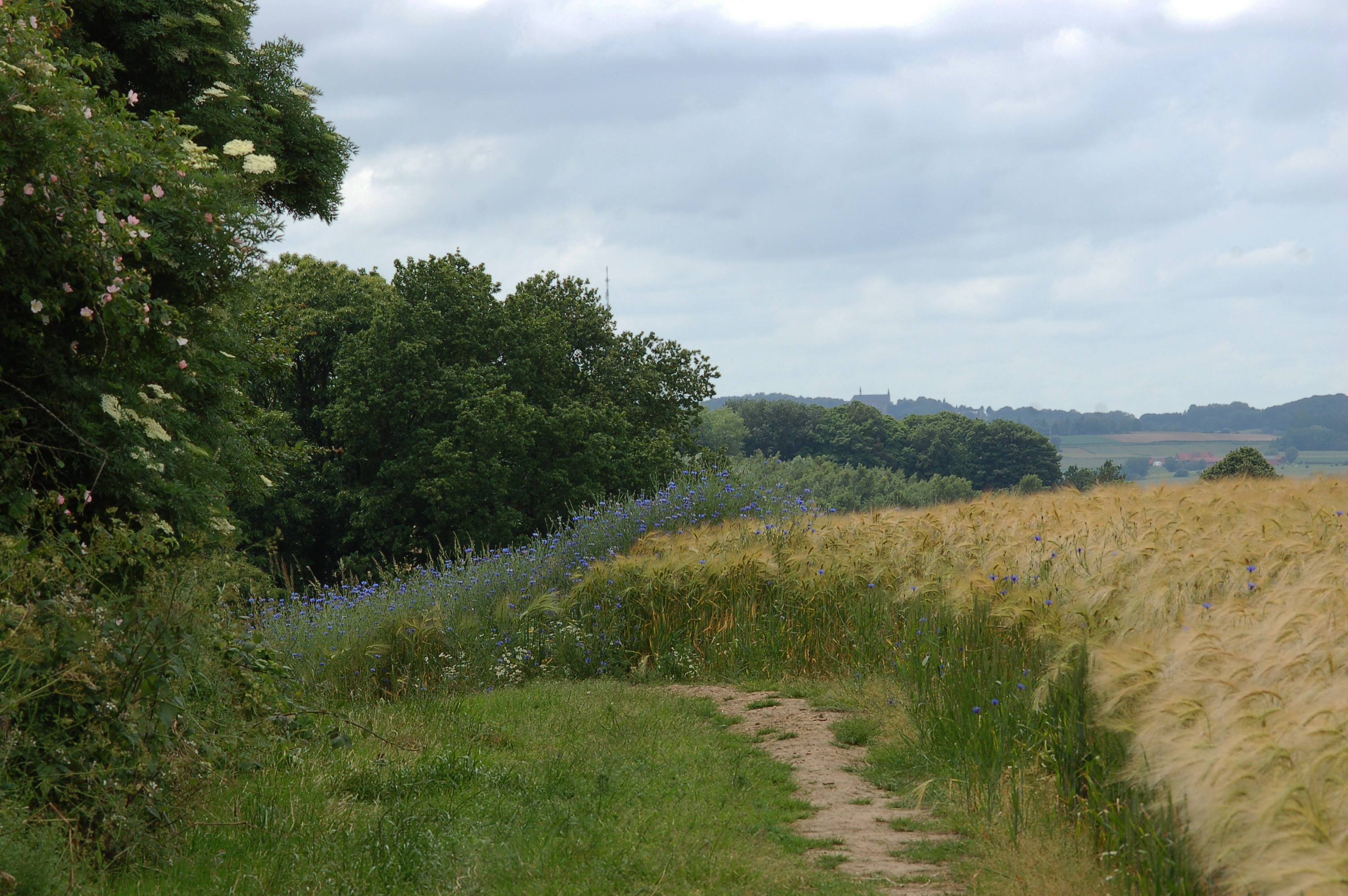 Der Scherpenberg liegt mitten in einer idyllischen, von kleine Wälchen und Weiden geprägten Landschaft. Erfreuen Sie sich am Flickenteppich aus alten Ackern, begrasten Talsenken und einer prächtigen Tümpelquelle mit Sumpfpflanzen in einer steilen, tiefen Mulde. Eine Vielzahl von kleine Quellen sorgt für prächtige Frühjahrsblumen und zahlreiche kleine Bäche suchen sich im Zick-Zack ihren Weg.