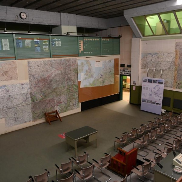 The bunker, built in the early fifties, was oriinally designed to be the command post of an international air defence system. However, the bunker would never play this role. In the early sixties, the supreme command of the Belgian armed forces decided to equip the bunker as a command post in case of exercices, crisis or conflict. After the Cold War, the bunker stood empty. The Royal Museum of the Armed Forces and of Military History in Brussels was entrusted with the task of preserving this unique piece of military heritage and making it accessible to the public, in collaboration with the Ypres CCMP (Centre for Competence in Support Material and Products).