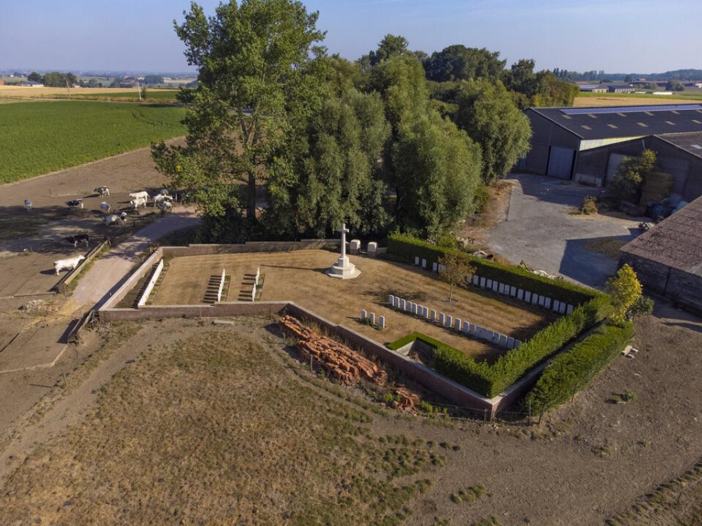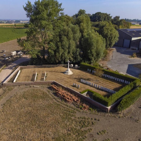 Lone Tree Cemetery is located close to the Lone Tree crater (also known as the of Spanbroekmolen crater), one of the 19 craters resulting from the explosion of mines at the start of the Battle of Messines Ridge. A total of 88 soldiers from the United Kingdom are commemorated here, nearly all of whom died on the first day of this battle.