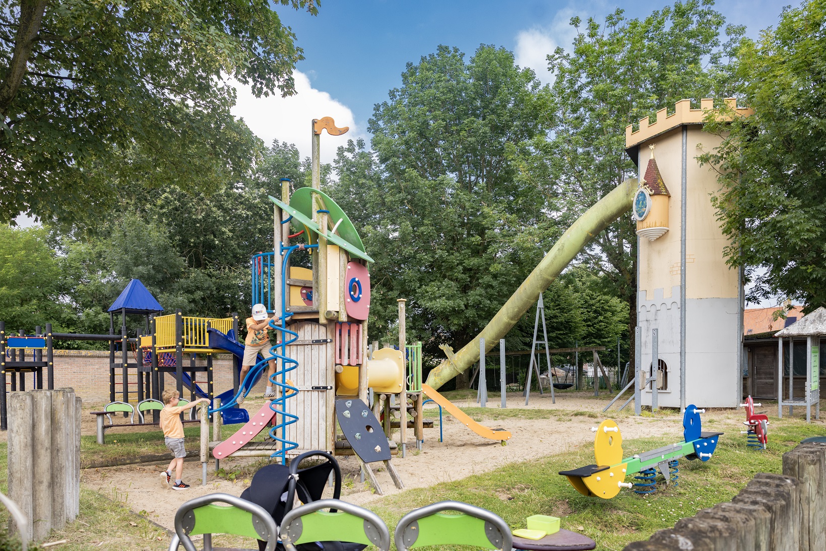 The playground in Nieuwkerke offers a variety of fun for children of all ages. With a spacious sandbox, seesaws, climbing frames, a tower with a slide, a seesaw, a swing with a toddler seat, and a bird's nest swing, there's something for everyone.