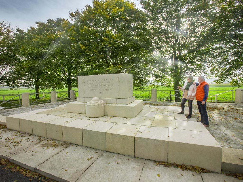 Un bloc rectangulaire massif sur une large plateforme rectangulaire honore les 27ème et 30ème Divisions américaines. Le monument fut construit en 1929 par l’American Battle Monuments Commission et créé selon un modèle réalisé par George Howe de Philadelphie.