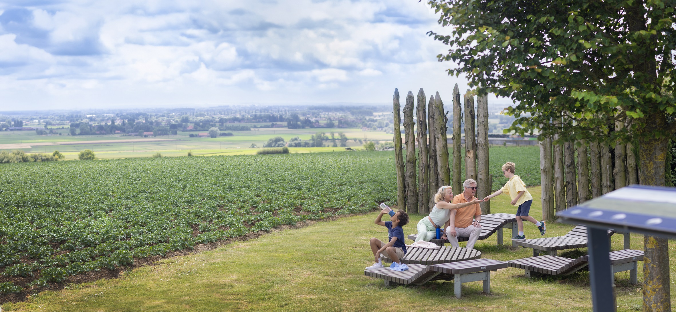 Deze plek is enkel te voet of met de fiets te bereiken, en biedt een mooi zicht op het dorp Dranouter, het Eeuwenhoutbos, de Zwarte- en de Kemmelberg. In de verte – in Frankrijk- zien we de zendmast op de Catsberg. Deze plek ligt op het wandelknooppunten netwerk en op het Kemmelberg pad, nabij knooppunt 59. Je vindt er een picknicktafel en twee ligzetel, netjes naast elkaar. De 3 panoramaborden duiden het landschap en brengen het Keltisch en prehistorisch verhaal van de berg in herinnering. Het is het verste punt van de Kemmelberg wandeling ( 9,1 km) als je start in Kemmel: een mooie plek om er eventjes te verpozen.