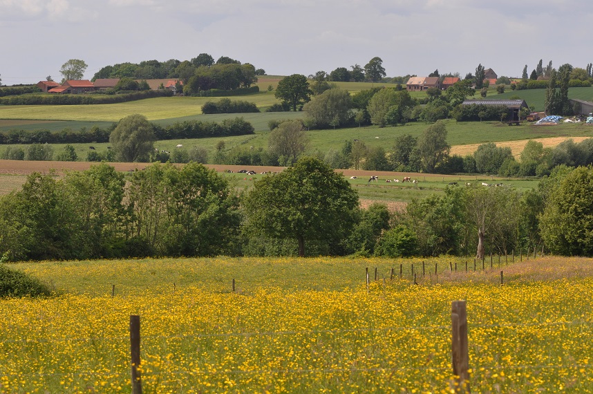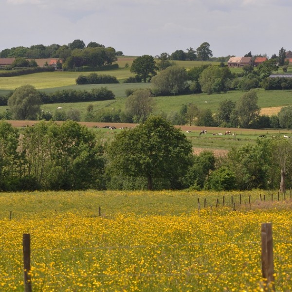 In het heuvelrijke landschap van Westouter wandel je van vallei naar vallei: met een afwisseling van bronbosjes, grasland, gevarieerde plantengroei … De terugweg loopt een eindje op de Franse grens, de Schreve, en doet nog de vallei van de Franse Beek aan.