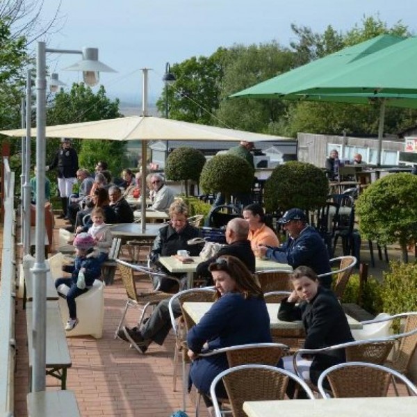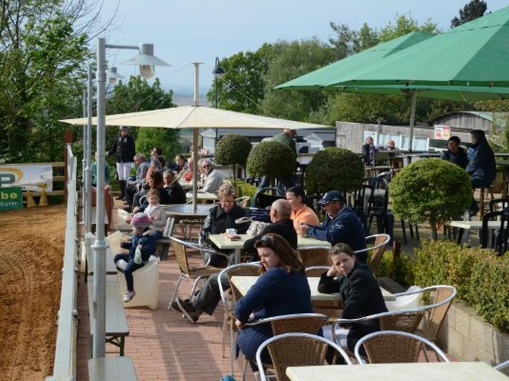 Geniet van een lekker streekbiertje op het terras, terwijl je naar een paardenles kijkt.
