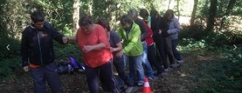 Op een steile helling, tussen de diverse bomen van verschillende hoogtes hebben wij touwbanen en andere hindernissen...