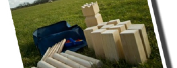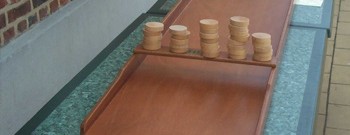 Gooi houten ballen naar de poortjes in een bak en scoor punten!