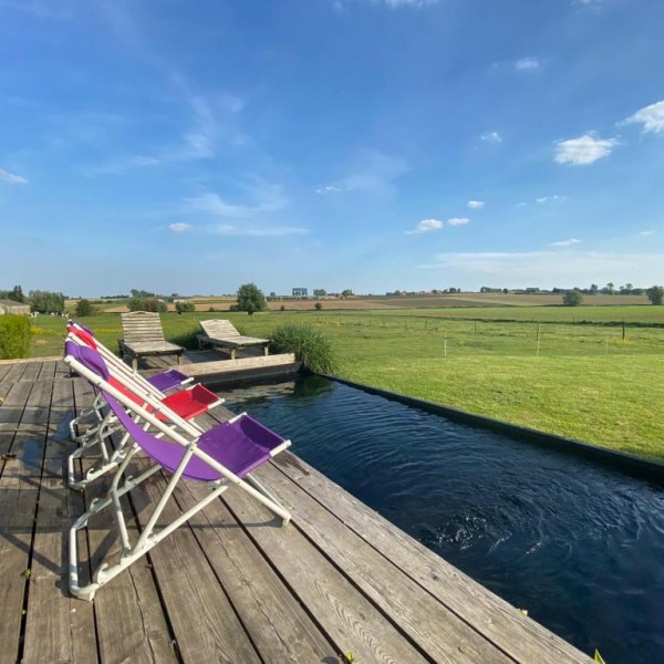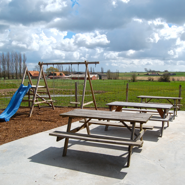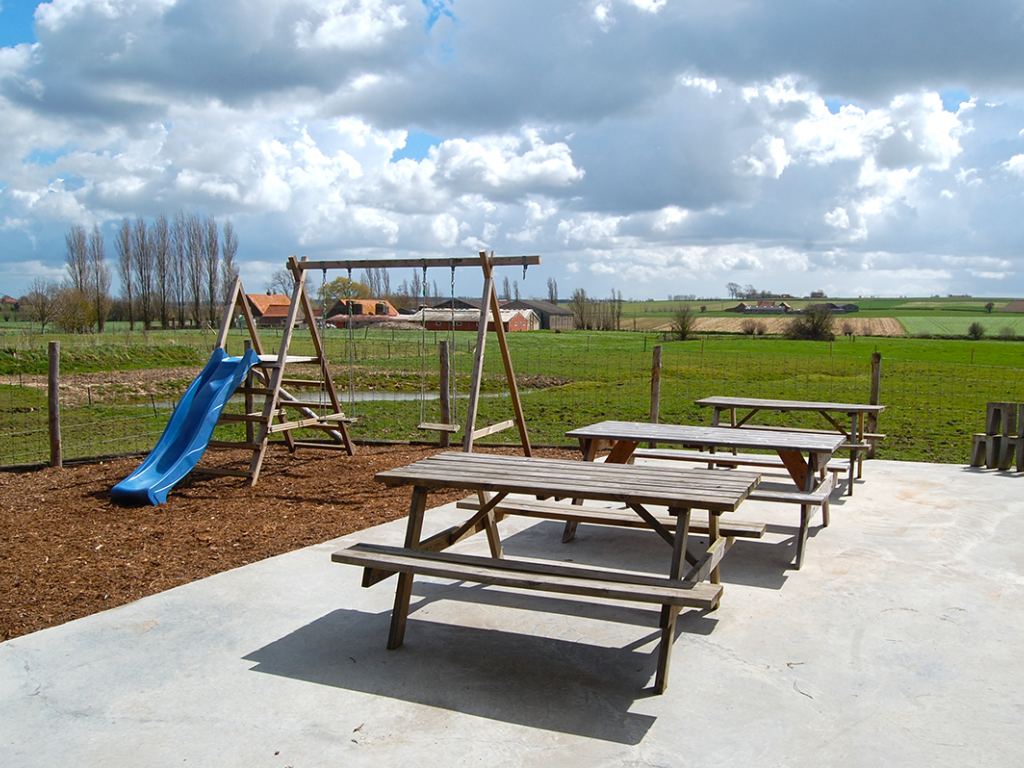 Deze grote vakantiewoning ligt in het glooiend landschap van het West-Vlaamse Heuvelland en nabij het natuurgebied 'Eeuwenhout'. De vakantiewoning heeft 6 slaapkamers en 3 sanitaire ruimtes. Er kunnen 20 personen overnachten. Er is een gezamenlijke ontmoetingsruimte met eettafel, stoelen, salon, tv en keuken, vaatwasser, frigo en diepvries. De binnentuin heeft een bar met frigo. Naast de sauna is er een buitendouche met warm en koud water en een zwembad.