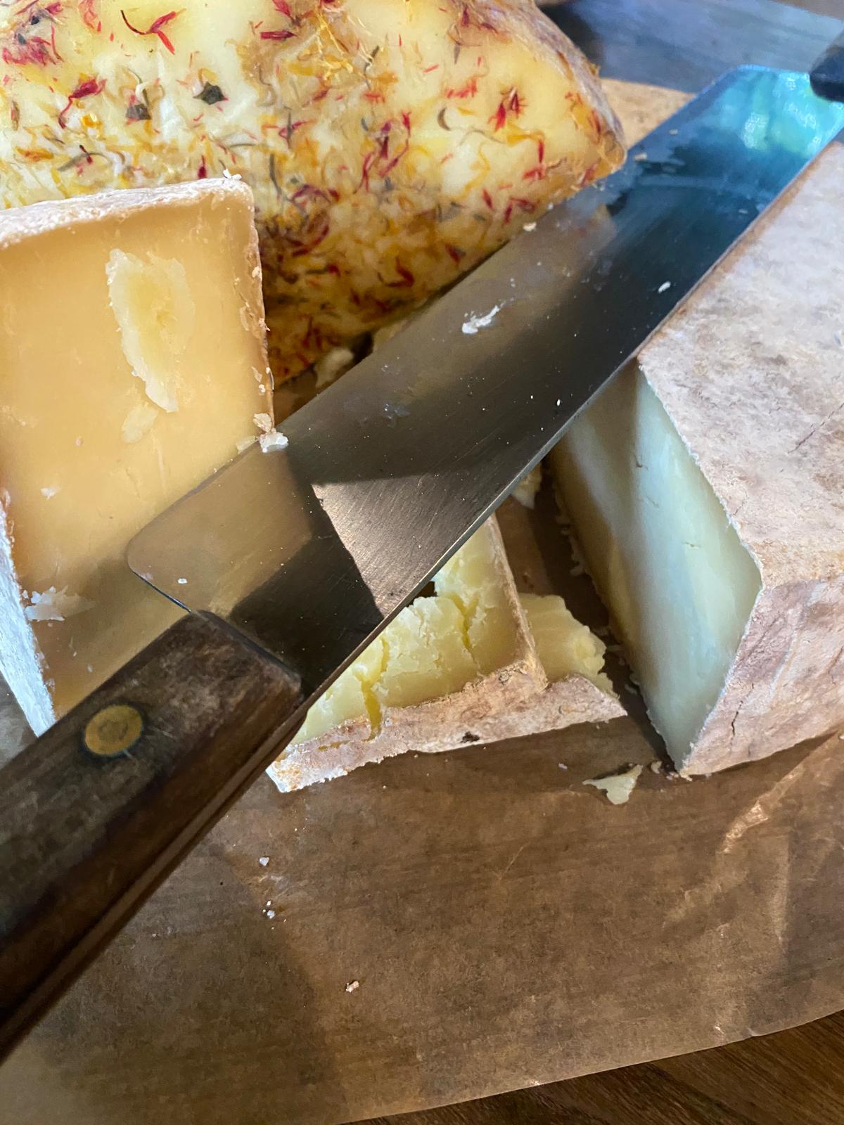 Door de week, wanneer wij op het land aan het werk zijn, is er zelfbediening aan de weg met een selectie van biologische kazen en seizoensproducten.