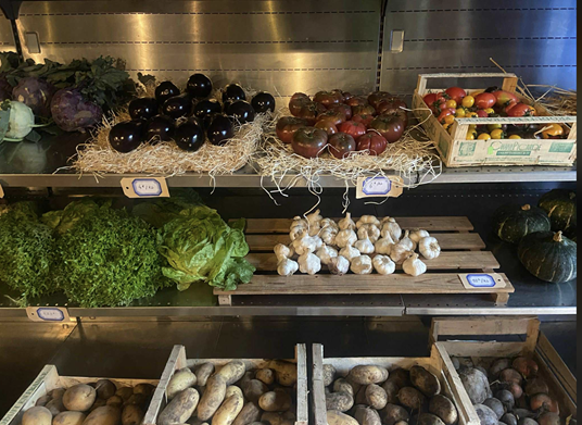 In de schuur vind je een ruime keuze aan verse seizoensproducten van het land, kaas, eieren en appelsap.