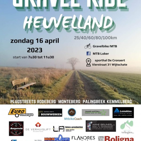 Gravelride in het mooie Heuvelland met heel wat verborgen pareltjes. Parcours voor elk niveau van beginners tot gevorderde gravel specialisten. Van een kidstocht (25km) tot een gravel-marathon (100km met 1000 hoogtemeters).