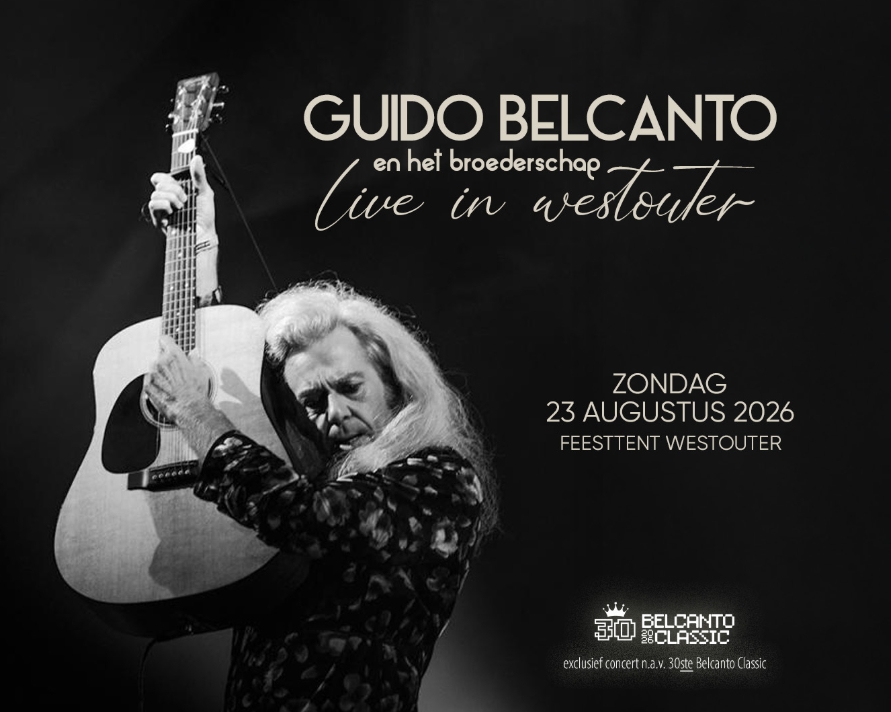 Op zondag 23 augustus 2026 trakteren Guido Belcanto & het Broederschap ons op een exclusief jubileumconcert — een unieke avond vol warmte, passie en onvervalste Belcanto-muziek.