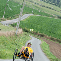 Erik Dely uit Loker overleed aan de gevolgen van een verkeersongeval in 2020. Hier in Heuvelland vond hij een ideaal terrein om ook met de ligfiets rond te toeren.