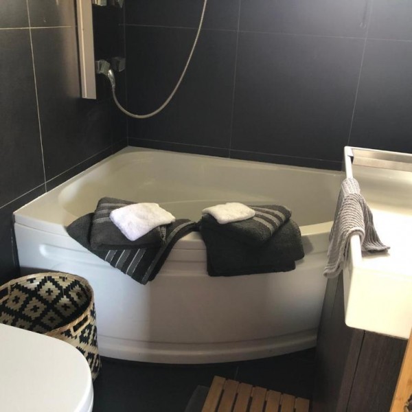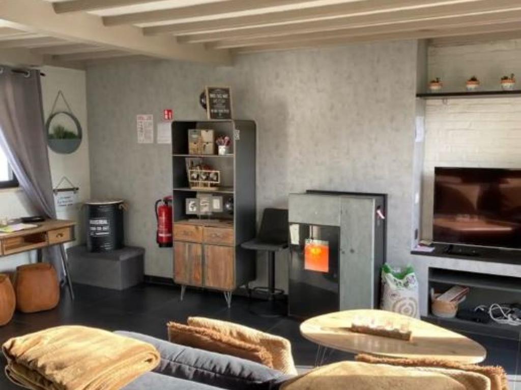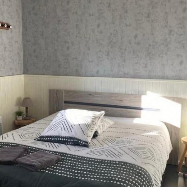 Charmant huisje van 60m2Woonkamer woonkamer ingerichte keuken en kantoorruimteBadkamer met ligbad2 slaapkamers één met een groot bed en één met een stapelbedOnmiddellijke nabijheid van de wandelpaden