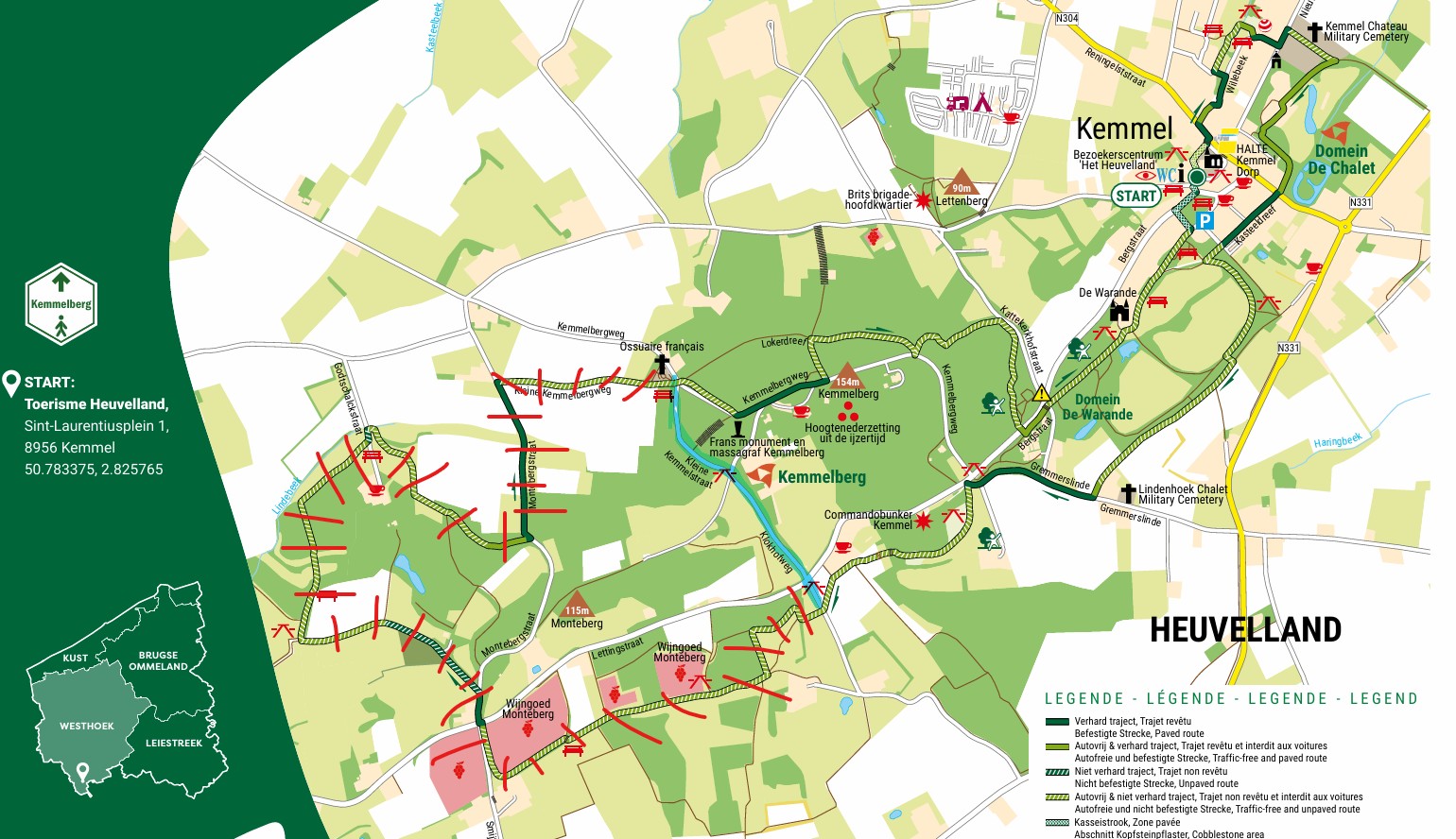 De klassementsproeven in Heuvelland zijn Monteberg & Wijtschate. De markt van Nieuwkerke maakt deel uit van de regroup park.