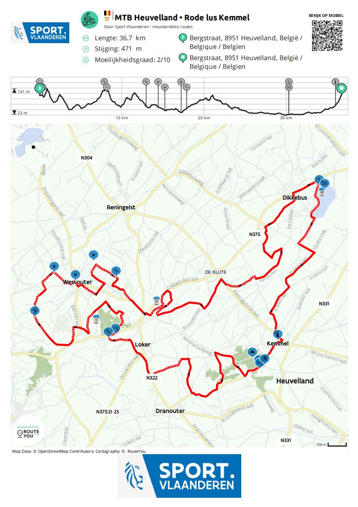 Rode lus KemmelAfstand: 36,69 kmHoogtemeters: 471 mOnverhard: 30,14%Moeilijkheidsgraad: gemakkelijk