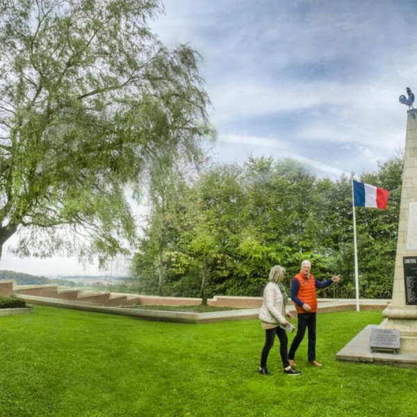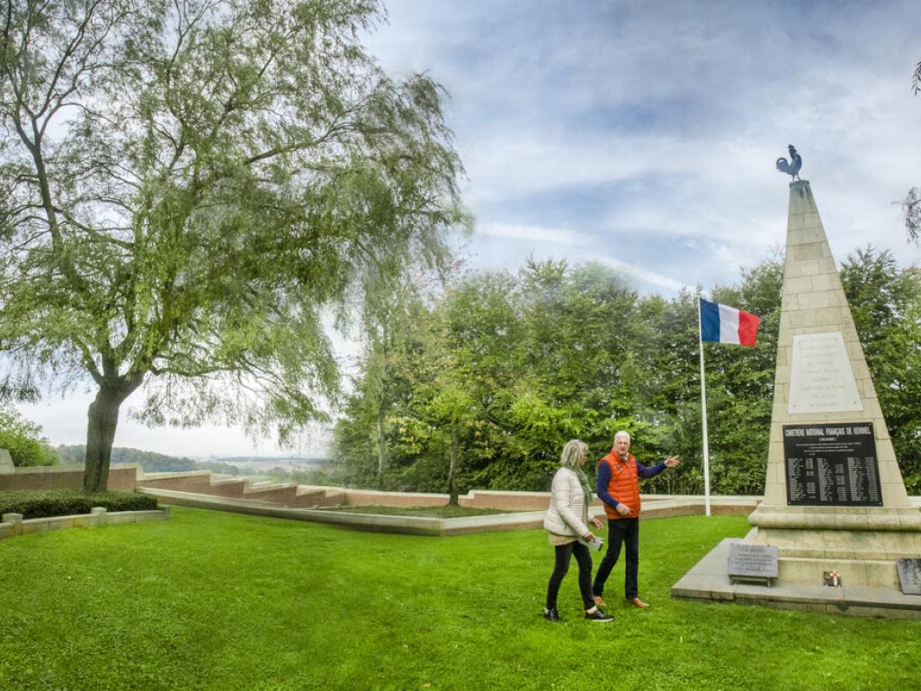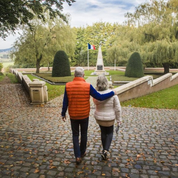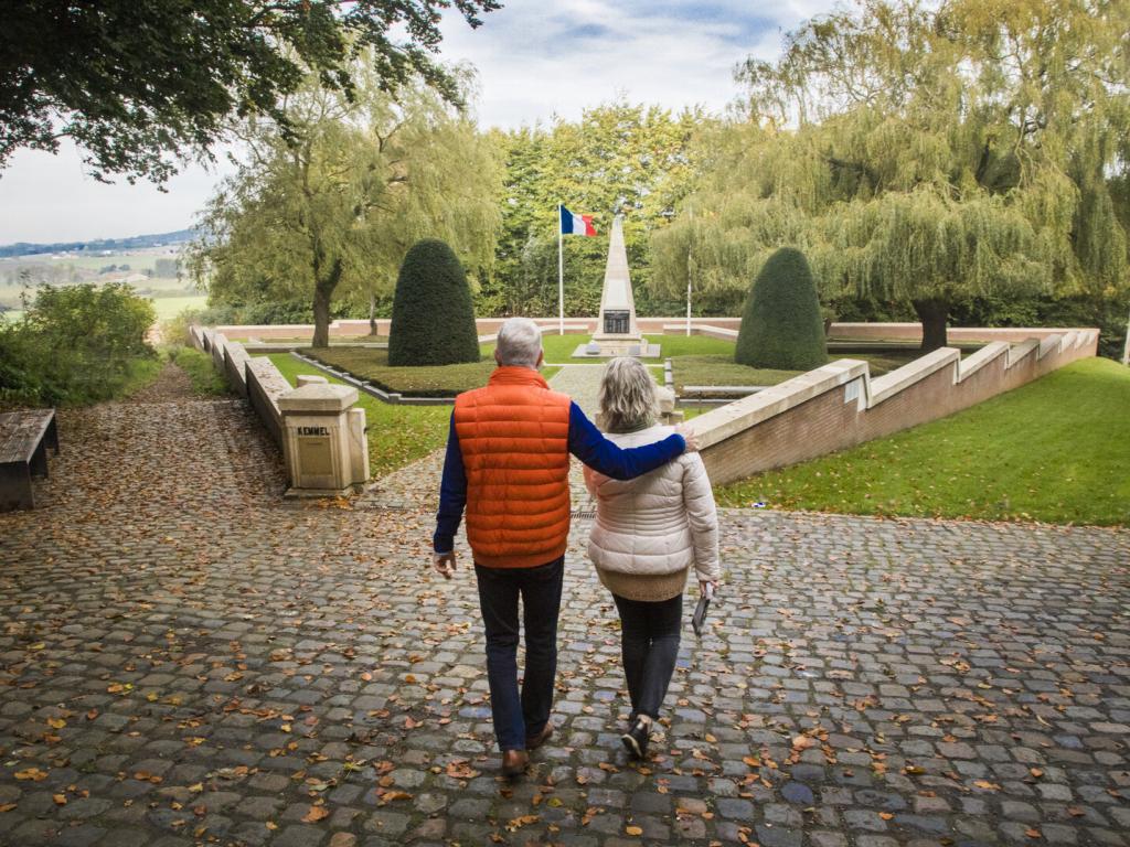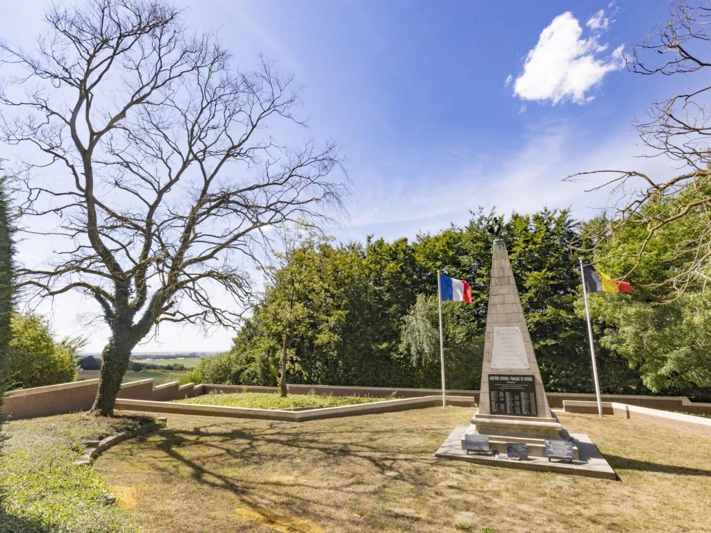 Onderaan de westelijke flank van de Kemmelberg ligt een Franse begraafplaats. Deze begraafplaats bestaat uit 4 massagraven waarin 5294 Franse soldaten rusten. Enkel 57 onder hen zijn geïdentificeerd. Hun namen vind je terug op de centrale obelisk. Dit gedenkteken herinnert de Franse aanwezigheid tijdens WO I en herdenkt de vele Franse verliezen tijdens de Slag om de Kemmelberg in 1918. Vanaf dit punt geniet je van een prachtig panoramisch zicht.