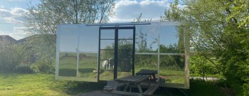 Overnachten in de box met zicht op de uitgestrekte velden. Per box kunnen er vier gasten overnachten. In de box staat een...
