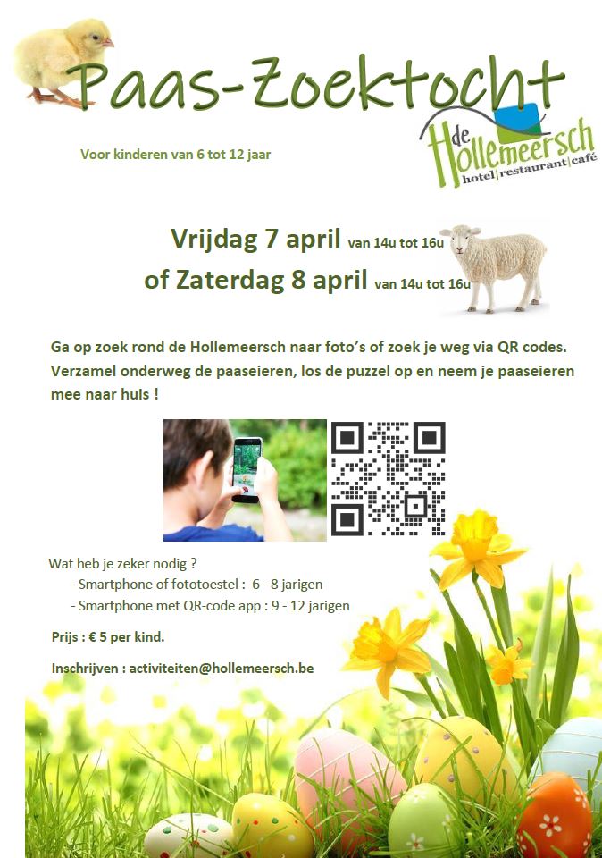 Ga op zoek rond de Hollemeersch naar foto's of zoek je weg via QR-codes. Verzamel onderweg paaseieren, los de puzzel op en neem je paaseieren mee naar huis!