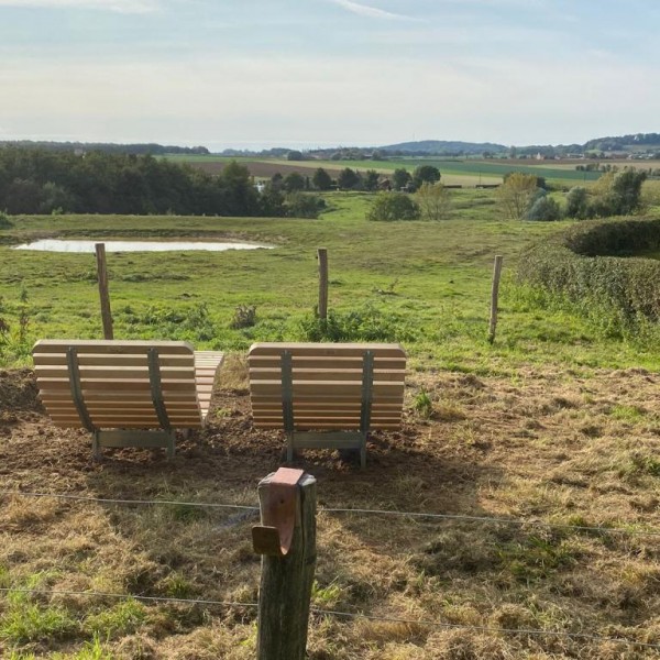 Om deze picknickzone te bereiken zal er wellicht wat geklommen moeten worden. Uitrusten van dat klimmen kan op de picknickbank of op één van de twee ligelementen, met een schitterend uitzicht over Dranouter.