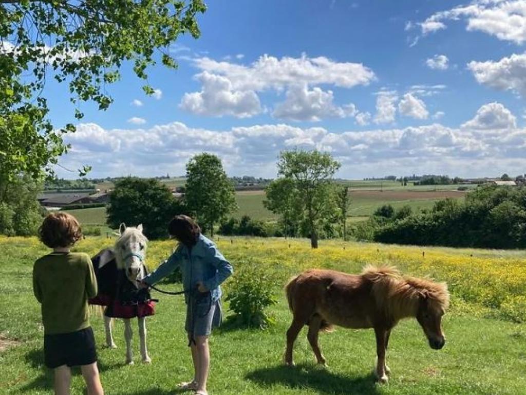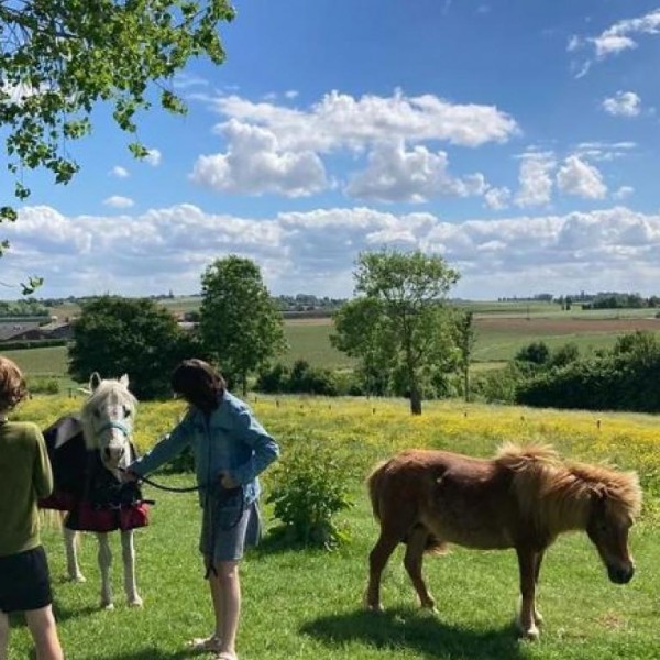 De wandeling en de nazorg van de pony's duurt ongeveer 1u30 max.