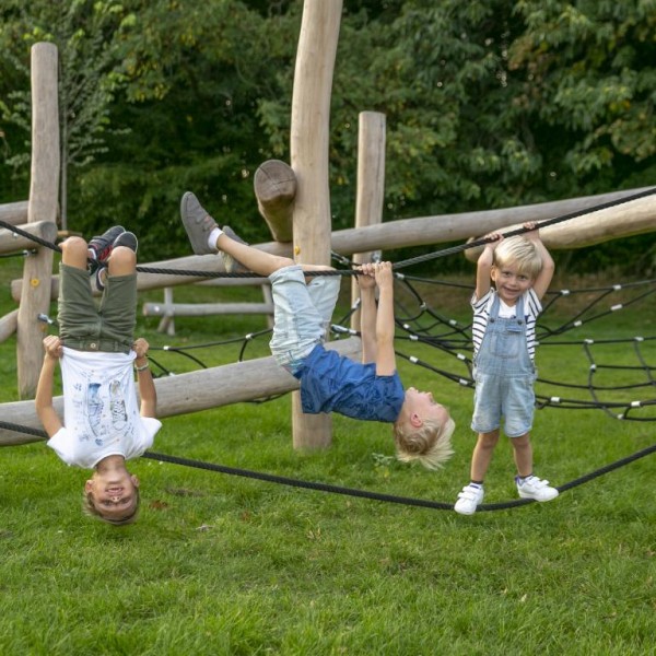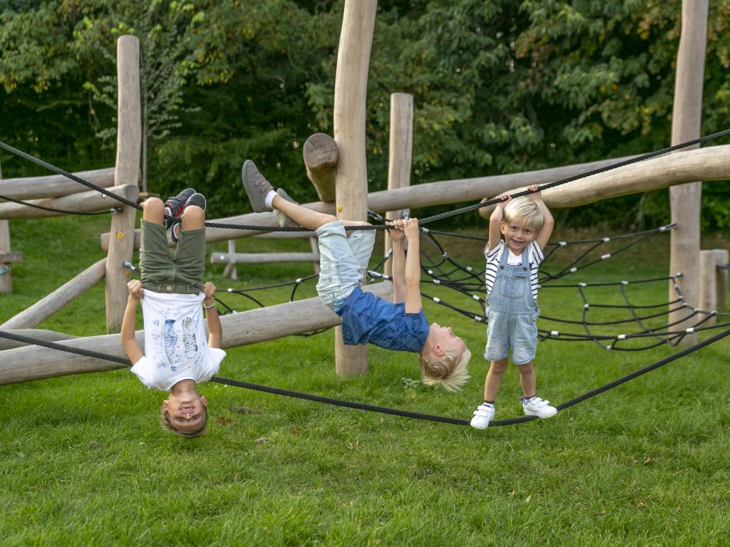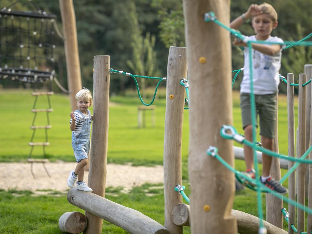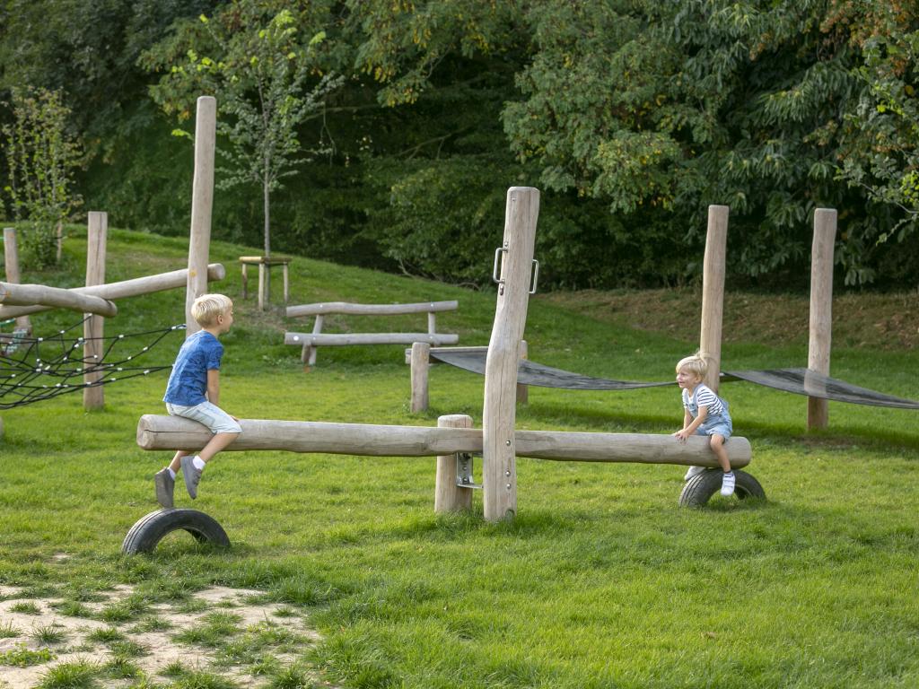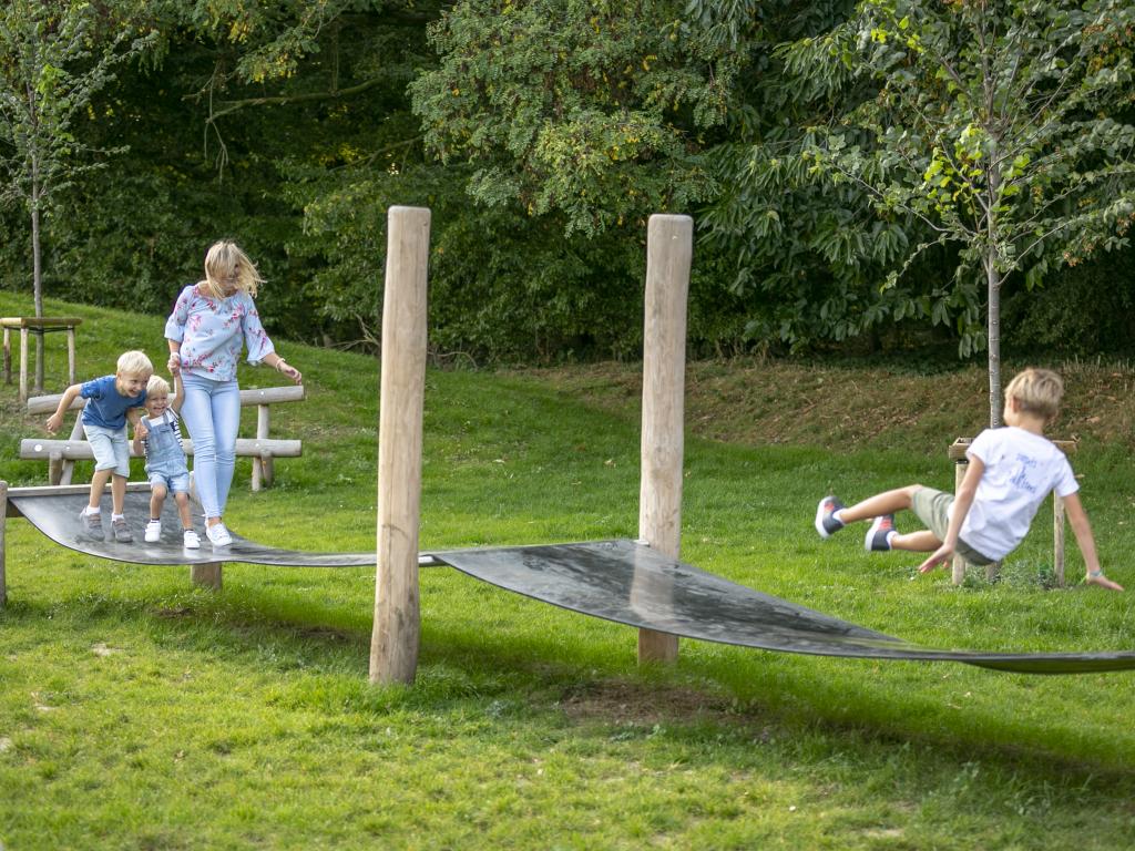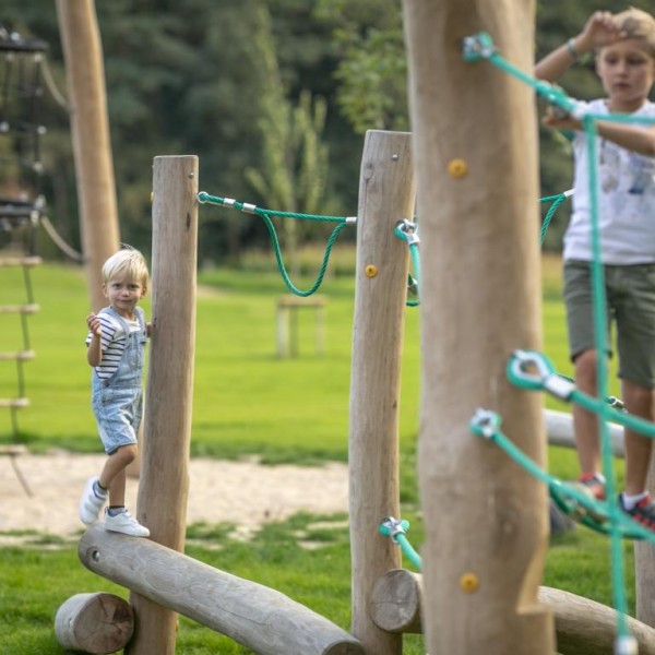 In de speelzone voor kinderen zijn er klim - en klautertoestellen voor +6-jarigen, een vogelnest, een avontuurlijke wip en een springbrug. Bij de speelzone is er ook een afdak voorzien met zitbanken en openbare toiletten. Er is ook een kampvuur plaats voorzien.