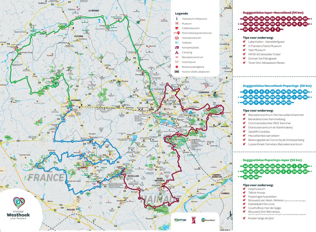 Het traject is opgesplitst in drie verschillende onderdelen: Van Ieper naar Heuvelland, van Heuvelland naar Poperinge en van Poperinge terug naar Ieper. Telkens ongeveer 50 kilometer op het fietsnetwerk.
