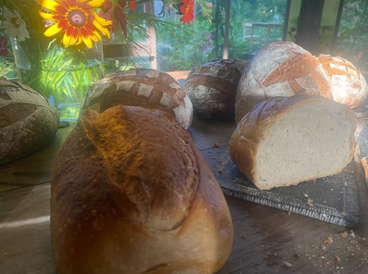 Boerderij winkel met bioproducten van de hoeve,kaas, zuurdesembroodBoerderijtafel voor feest of versnapering