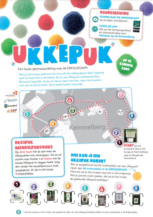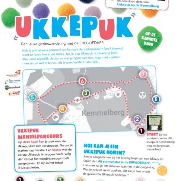 - Ukkepuk wandelparcours: Op deze kaart kan je zien waar de Ukkepukken zich verstoppen. Ga om te starten naar locatie 1 en luister wat de eerste Ukkepuk te zeggen heeft. Volg dan verder het wandelparcours zoals aangegeven.