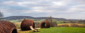 Op de flank van de Scherpenberg, naast het valleitje ' klein Zwitserland' liggen de cocons. Deze landart installatie...
